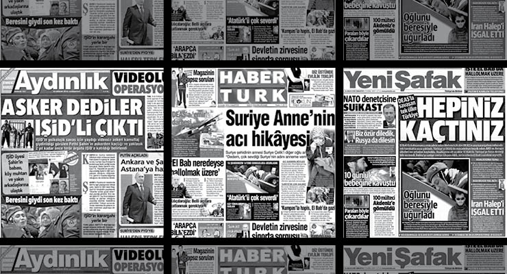 İktidara yakın gazeteler de, olaya hiç yer vermedi. Birinci sayfalarda Erdoğan’ın El Bab operasyonuna ilişkin yaptığı açıklamalarsa geniş yer buldu.