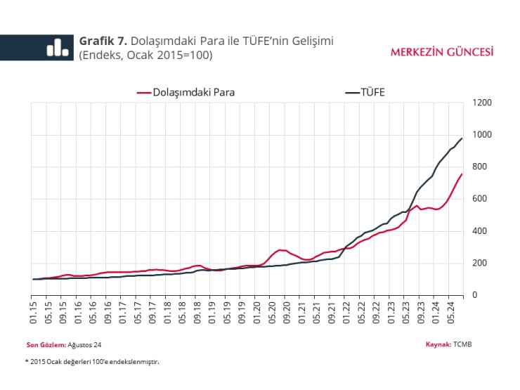 Dolaşımdaki paranın enflasyondan düşük büyüme oranı, daha fazla kişinin günlük işlemlerinde nakit yerine kartları tercih ediyor olduğu görüşünü destekliyor.