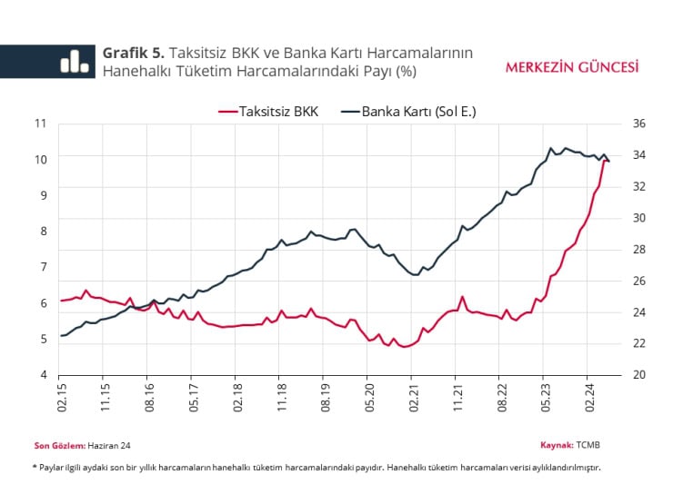 Çoğunlukla borçlanma ihtiyaçlarından bağımsız olan kart kullanımındaki artış, borçlu talebindeki artıştan ziyade harcama davranışındaki değişimi yansıttığı için, yalnızca kredi kartı kullanımı gibi geleneksel göstergelere dayalı çıkarımlar yanlış yorumlara neden olabiliyor.”