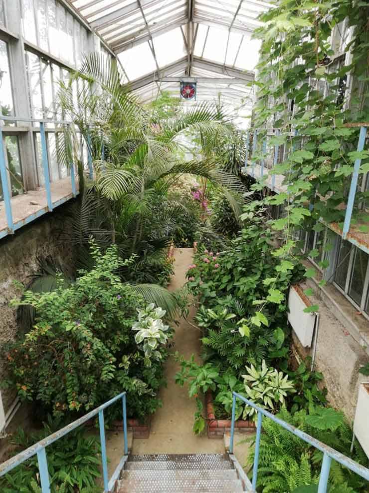 Botanik bahçesi bünyesinde soğuk ve sıcak ülke bitkilerinin yetiştiği farklı ısı ve boyutlarda yedi sera bulunuyor. Buralarda tropikal ve subtropikal ortamda yetiştirilen otsu ve odunsu yapıda bitkiler ve epifitik (bir başka bitkinin üzerinde ona zarar vermeden yaşayan) bitkiler yaşıyordu. Tropik seralarda kahve, kakao, mango, ananas, narenciye türleri ve muz türleri yetiştirilebiliyordu.