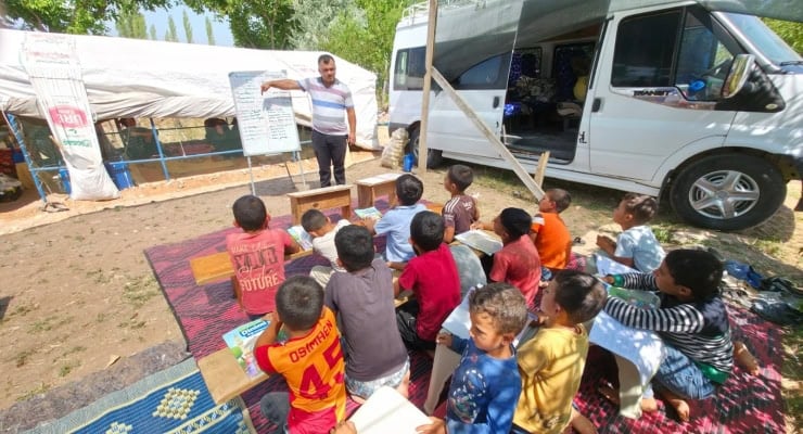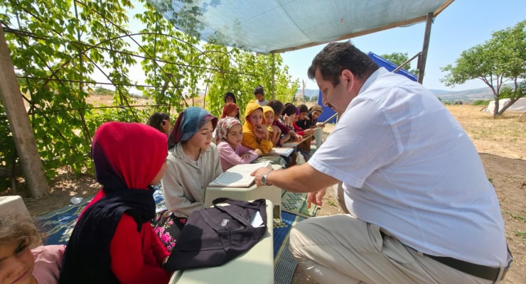 “Kuran kursu öğreticilerimizle çadırlarda kalan çocuklarımıza ulaşarak onlara hem Kuran-ı Kerim hem de temel dini bilgiler eğitimi veriyoruz.