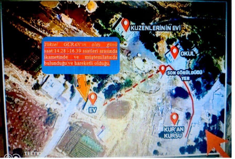 * 21 Ağustos’ta anne Yüksel Güran’ın saat 14.28’de ikametinde olduğu 16.39’a kadar ikametinde bulunmaya devam ettiği, ikameti dışında bir yerde olmadığı değerlendirilmektedir.