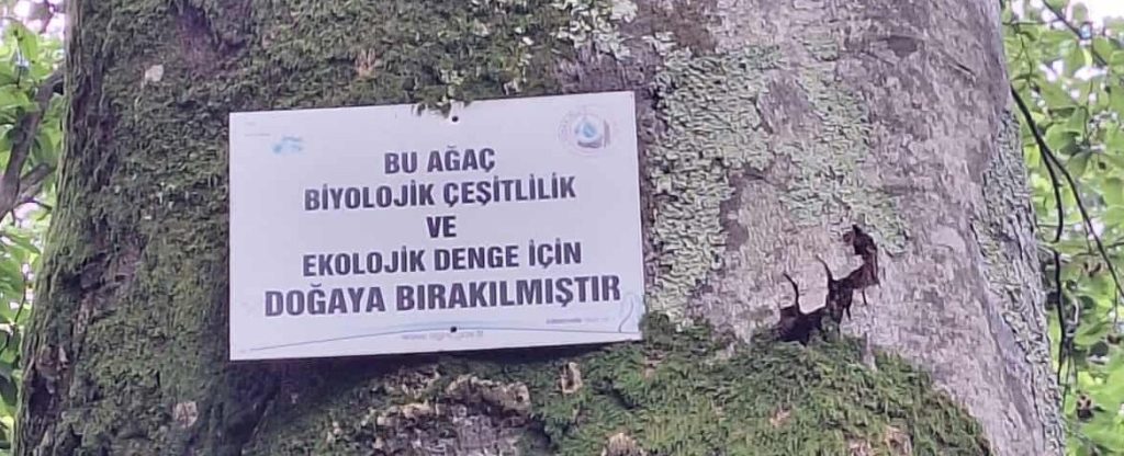 Orman Genel Müdürlüğü ağaca plaket çivileyerek işini nasıl bir özenle yaptığını göstermiş. Plakette şu yazıyor: