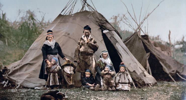 1900’lü yıllarda Norveç’te yaşayan bir Sami ailesi. Fotoğraf: Wikipedia