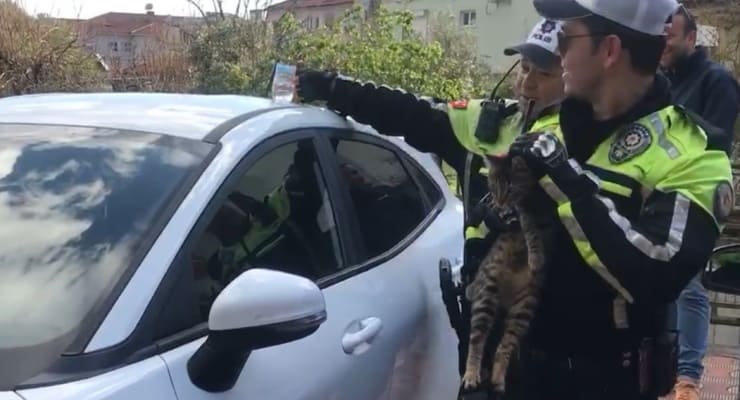 Otomobilin yanına gelen polis, araç sahibine ulaştı. Araç sahibinin gelmesiyle otomobil açıldı ve kedi dışarıya çıkarıldı.