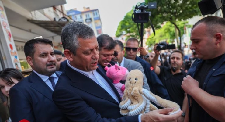 CHP Genel Başkanı Özgür Özel, Ankara’daki esnaf ziyaretinde oyuncak ahtapot aldı: “(Cumhurbaşkanı) Tayyip Erdoğan’ın ahtapotu bu. Kolları nasıl TÜRGEV’e, Kıbrıs’taki yolsuzluğa uzanıyor…”