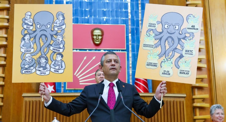 CHP Genel Başkanı Özgür Özel, Cumhurbaşkanı Tayyip Erdoğan’a ahtapot görselleriyle seslendi: “Al sana ahtapot.”