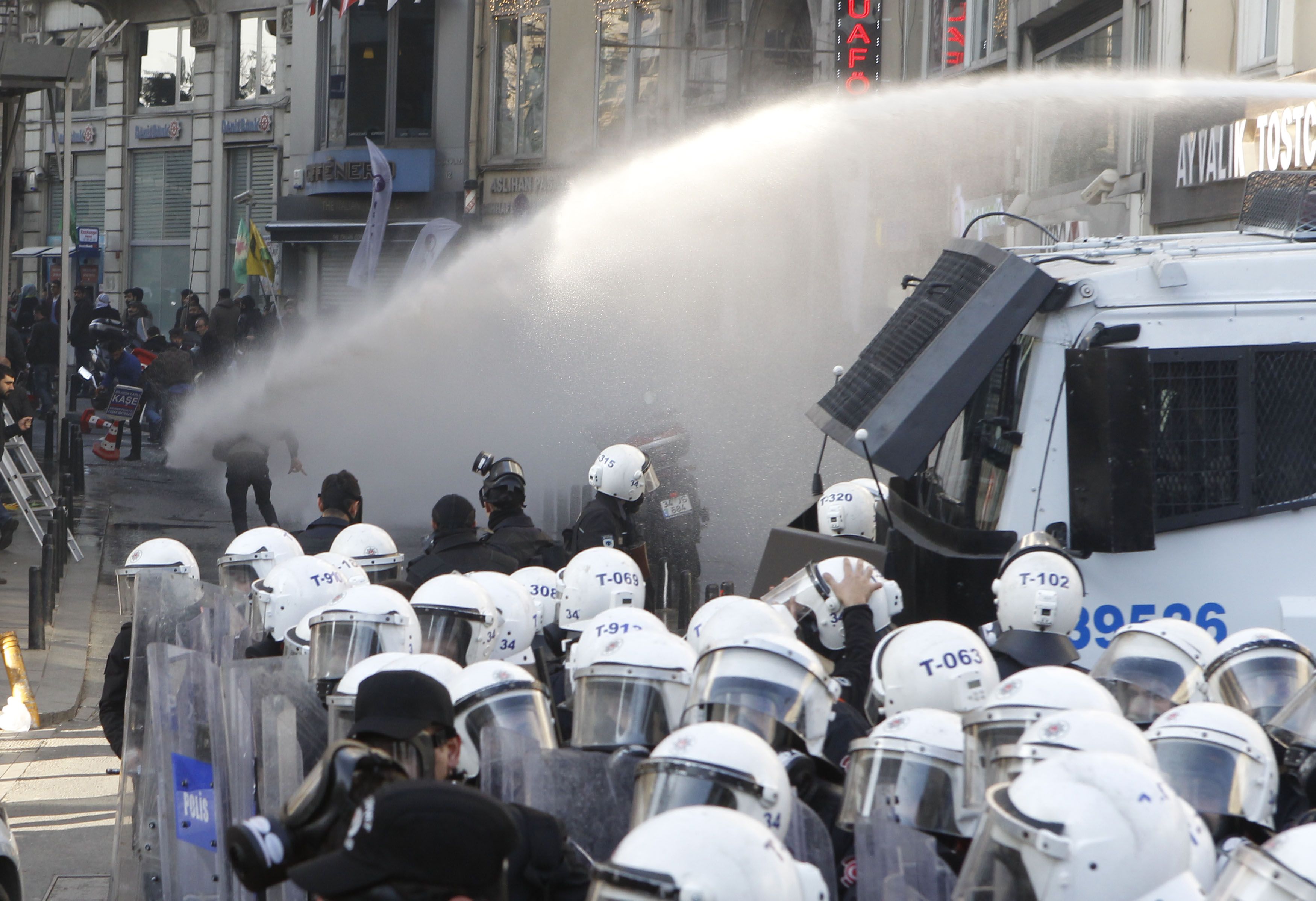 Geçen yıl Paris’te öldürülen PKK’lı Sakine Cansız, Leyla Söylemez ve Fidan Doğan’ı anmak için Taksim’de toplanan gruba, polis su ve biber gazıyla saldırdı. Yolsuzluk operasyonları kapsamında savcının verdiği emirleri yerine getirmemekle gündeme gelen emniyet güçleri, bugünkü anma töreninde mesaiden kaçınmadı.