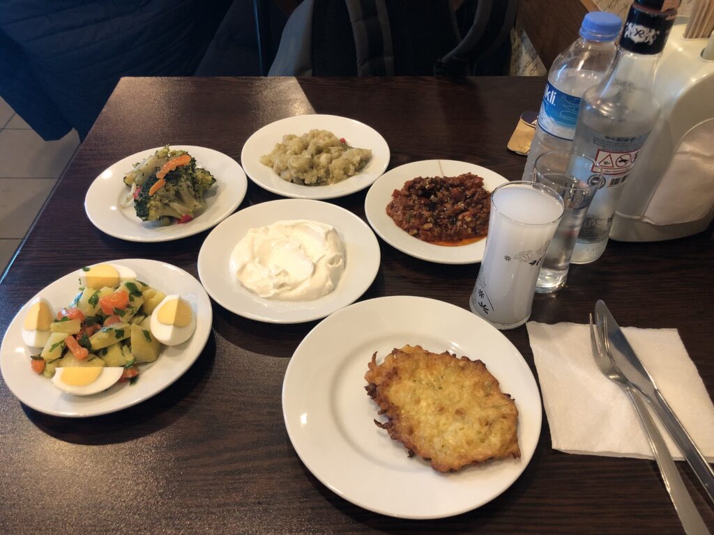 Yarımşar porsiyon istediğim mücver, acılı ezme gayet taze, patates salatası lezzetli, patlıcan salatası sotelenmiş biberle hazırlanmış. Brokolinin rengi yerinde, biraz fazla haşlanmış. Bir de süzme yoğurt.