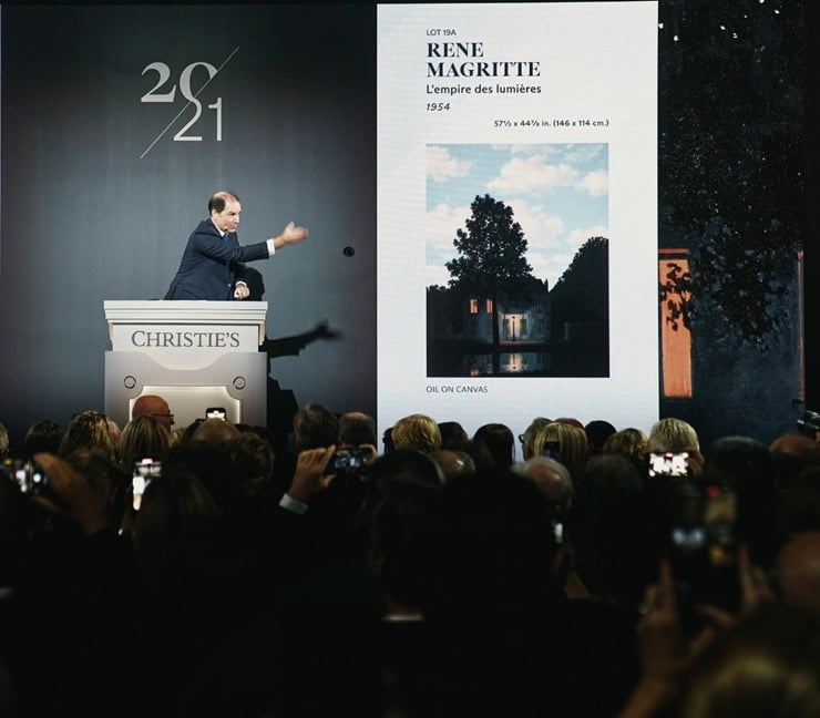 Magritte’in ‘L’empire des lumieres (Işık İmparatorluğu)’ serisindeki tablo, 10 dakikalık açık artırmada 121 milyon dolara alıcı buldu.