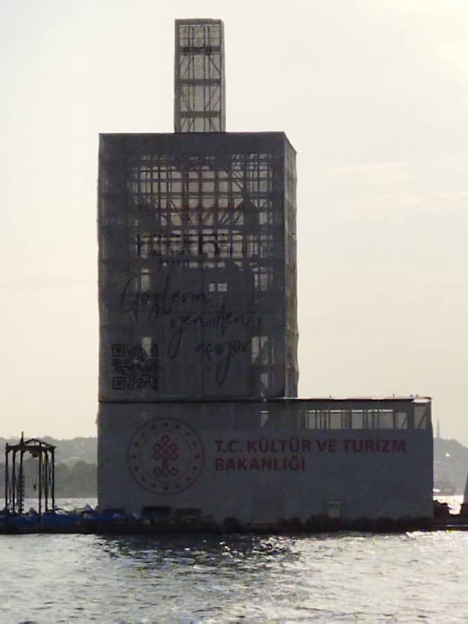 Kız Kulesi’nin restorasyon çalışmaları sürerken, Twitter’da bir kullanıcı tarafından paylaşılan videoda kulenin brandayla çevrili halinde kubbesinin olmaması ve arka tarafın görülmesi dikkat çekti. Sosyal medyada kullanıcılar görüntülere ‘Kız Kulesi’nin yıkıldığı’, ‘zarar verildiği için perdeyle kapatıldığı’, ‘çalındığı’ gibi yorumlarla tepki gösterdi.