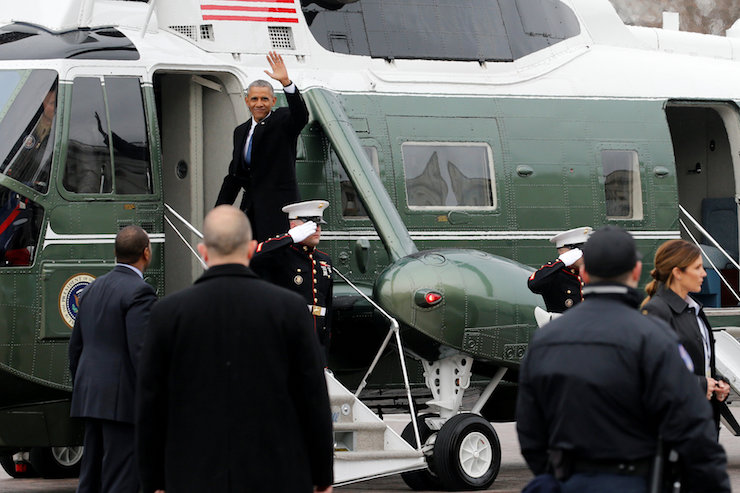 Obama departs following Trump's inauguration at the Capitol in Washington