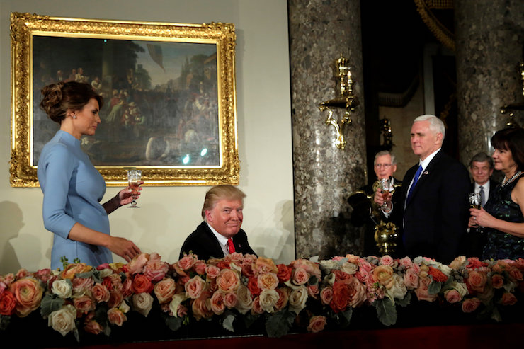 President Donald Trump looks on during a toast at the Inaugural luncheon