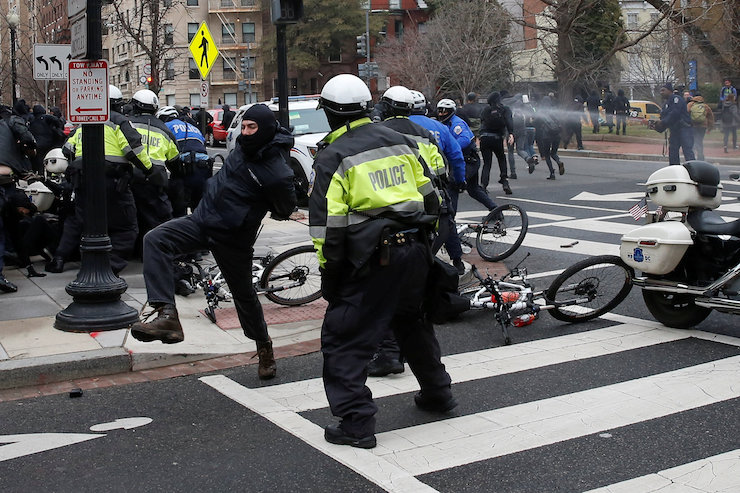 Protesters clash with police during demonstration against Trump on the sidelines of the inauguration in Washington