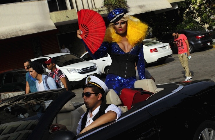 Revelers take part in a Gay Pride parade in Panama City