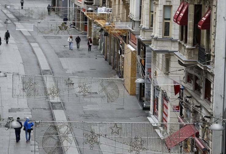 Pedestrians walk along Istiklal street, a major shopping and tourist district, in central Istanbul