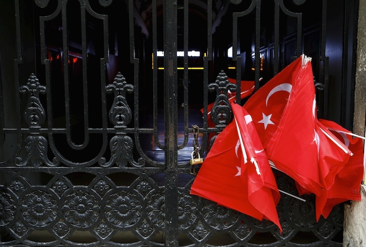 Turkish flags are placed next to the scene of a suicide bombing at Istiklal street, a major shopping and tourist district, in central Istanbul