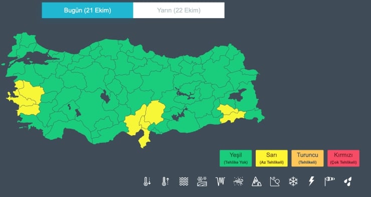 Yağışlar; Kıyı Ege, Osmaniye, Hatay kıyıları, Bitlis, Şırnak ve Siirt çevreleriyle Van ve Hakkari’nin batı ilçelerinde yerel kuvvetli olacak.