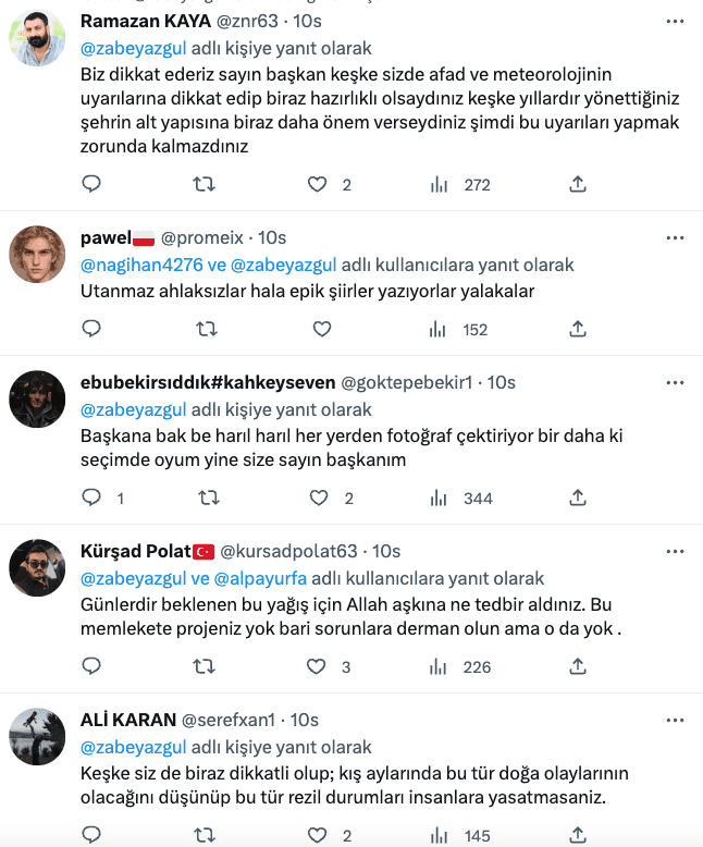 Ancak paylaşımlara çok sayıda belediyeyi eleştiren yorumlar yapıldı. Kimi yorumlarda su baskınlarının da görüntüleri yer aldı.