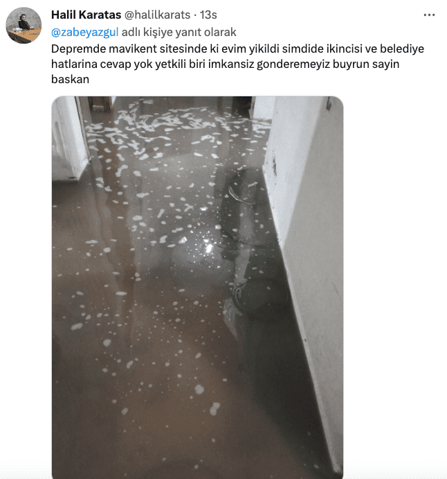 AKP’li belediye başkanı Beyazgül, Twitter’dan paylaştığı fotoğraflarla sahada çalıştığını belirtirken uyarılarda bulundu.