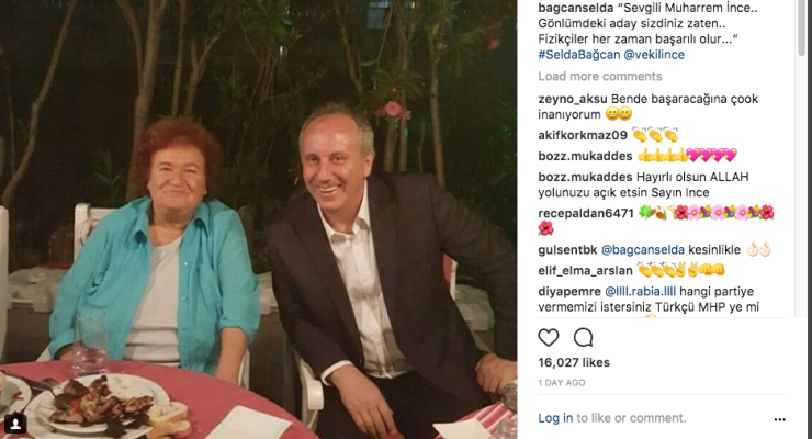 Instagram hesabına İnce ile çekilmiş bir fotoğrafını koyan Bağcan, “Sevgili Muharrem İnce.. Gönlümdeki aday sizdiniz zaten.. Fizikçiler her zaman başarılı olur…” yazdı.
