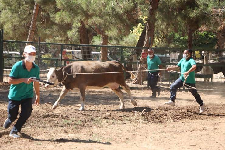 Gaziantep’te büyükşehir belediyesinin ‘kurban yakalama timi’, yaklaşan Kurban Bayramı’na antrenman yaparak hazırlanıyor.