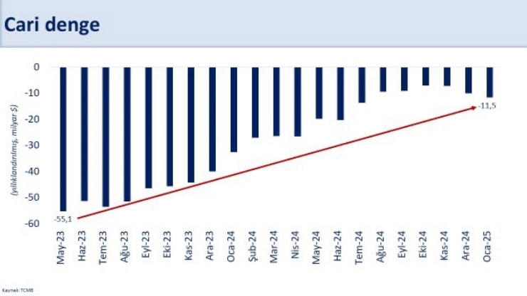 Yıllık cari açığın ocakta 11,5 milyar dolar (yaklaşık 421 milyar 78 milyon lira)olduğunu belirten bakan şunları söyledi: