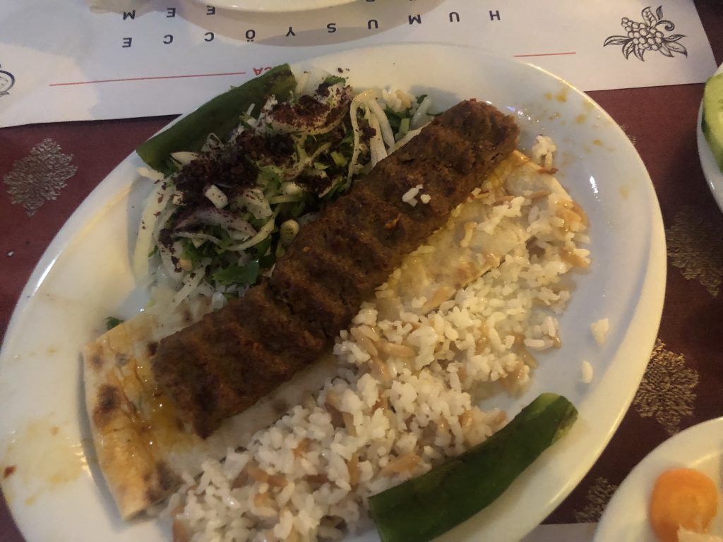 Gördüğünüz üzere Ramazan’da açık, kandillerde de. 11:00-02:00 saatlerinde hizmet veriyor. Dördü mutfakta 16 çalışanı var. Ramazan nedeniyle çoğu izinli, üst kat da kapalı. Müşterilerin tamamına yakını müdavim, çevre semtlerden. Gerektiğinde kendisi de mutfağa giriyor. Tavsiyesiyle Adana söyledik, ardından bir porsiyon daha. Kıymadan değil, zırhta çekilmiş. Baharatlar Maraş ve Antep’ten geliyormuş.
