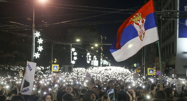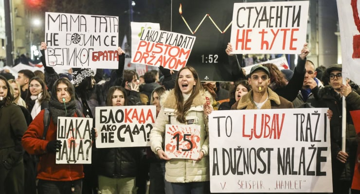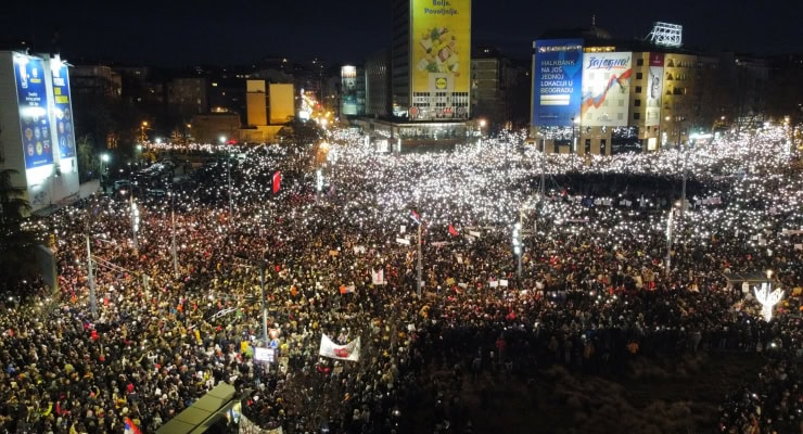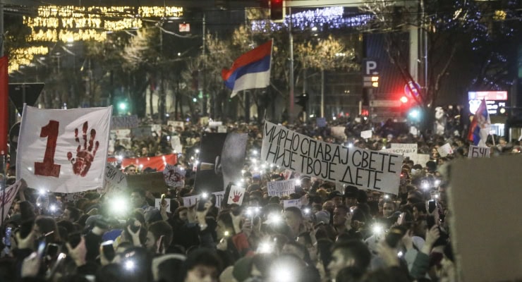 Sırbistan’da Novi Sad kentindeki tren istasyonunda 15 kişinin ölümüne neden olan kazanın ardından hükümete tepkili öğrencilerin başlattığı gösteriye bu akşam on binlerce kişi katıldı.