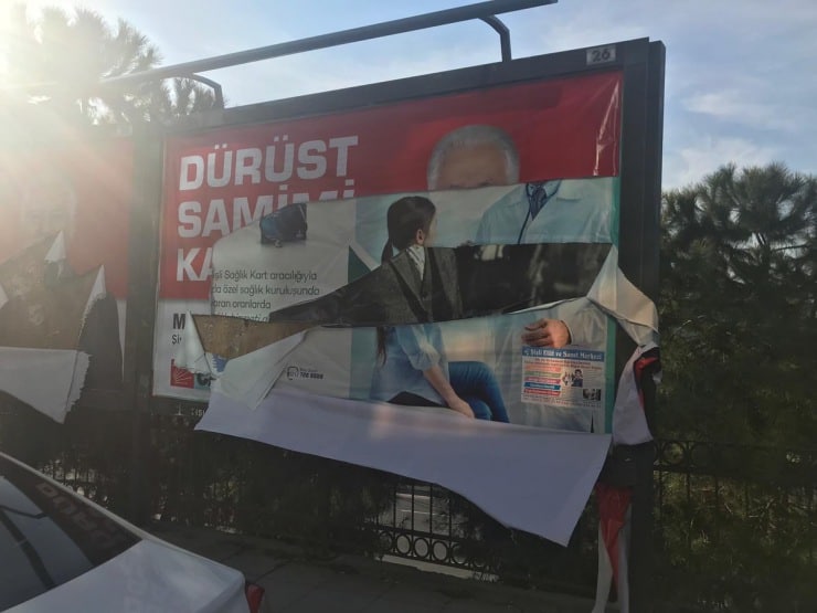 CHP İstanbul Milletvekili Aykut Erdoğdu, 9 Mart’ta Twitter hesabından yırtılan afişlerin fotoğraflarını paylaşmıştı.