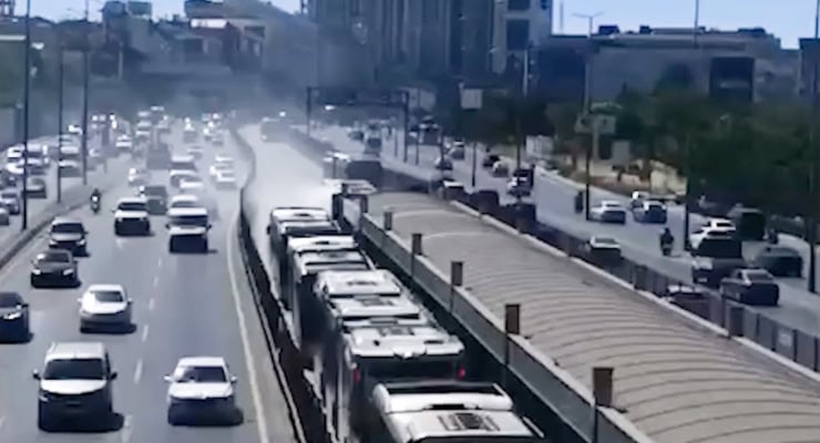 Dün de Beylikdüzü’nden Cevizlibağ yönüne ilerleyen metrobüsün motor bölümünde yangın çıkmıştı.