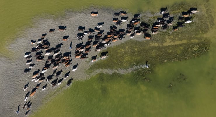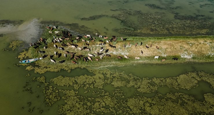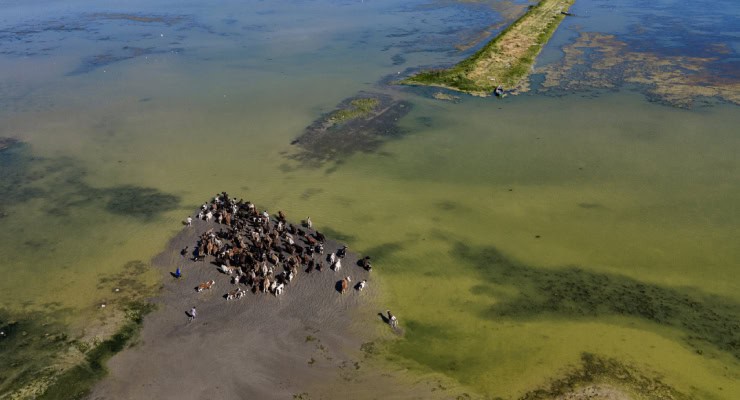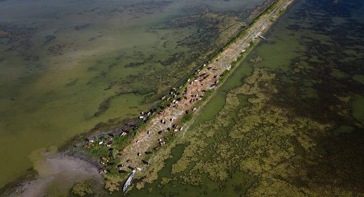 Gölün sularının çekildiği kısma şimdi büyükbaş hayvanlar otlamak için çıkarılıyor.