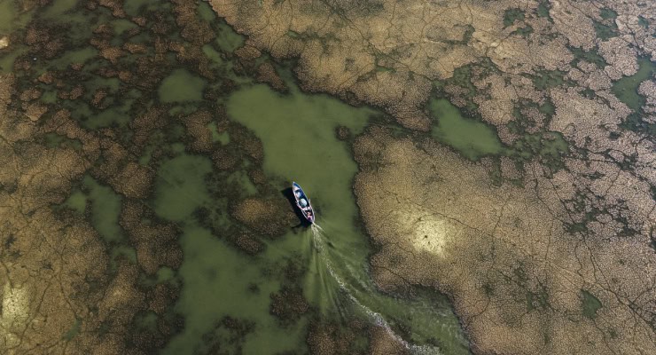 Ancak kuraklık yüksek hava sıcaklıkları sonucu gölde sular çekildi.