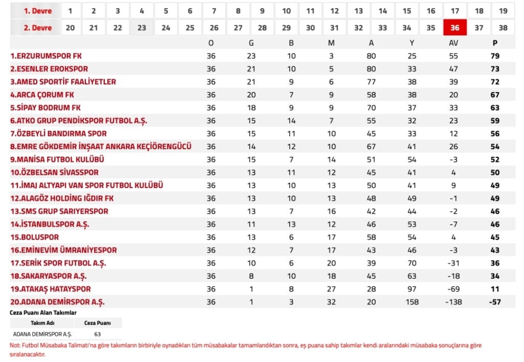Puan durumu şöyle: