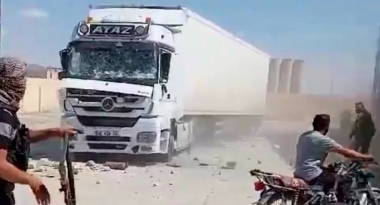Bir başka videoda bir Türk tırını tekmeleyen saldırgan, “Türkiye bizi Esad’a mı satıyorsun, biz de seni PKK’ya mı satalım” diyor.