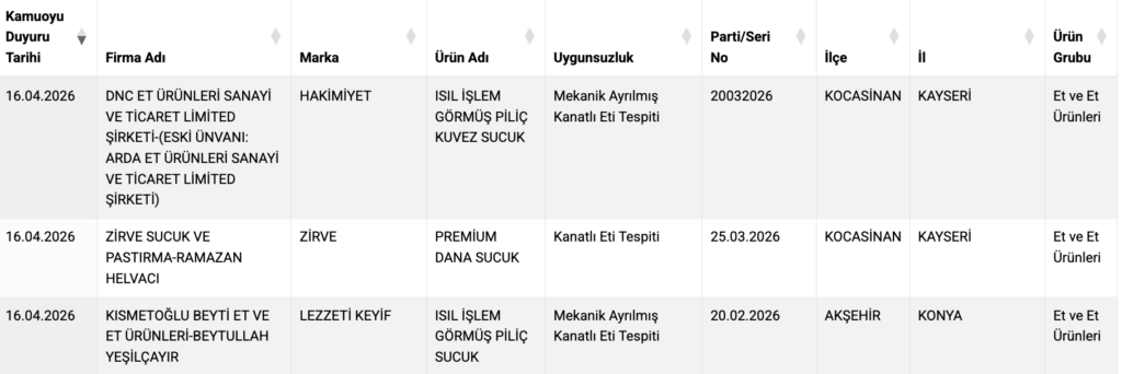 Bakanlığın denetimlerde bulduğu bilgileri, 5996 Sayılı Veteriner Hizmetleri, Bitki Sağlığı, Gıda ve Yem Kanun’unun 31’inci maddesinin 6’ncı fıkrası uyarınca kamuoyunun bilgisine sunabileceği hükme bağlanmıştı.