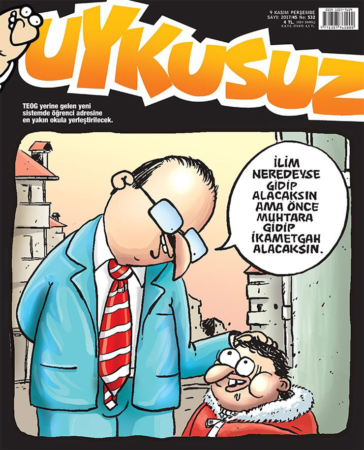 Haftalık mizah dergisi Uykusuz bu hafta kapağına TEOG’un yerine gelen ‘Eğitim Bölgesi ve Sınavsız Mahalli Yerleştirme Sistemi’ni taşıdı.