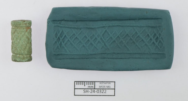 Aynı döneme ait şimdiye kadar Batı Anadolu’da sadece geçen yaz Çanakkale’deki Troya Antik Kenti’nde biri pişmiş topraktan, diğeri mavi feldispat taşından yapılmış iki silindir mühür bulunmuştu.