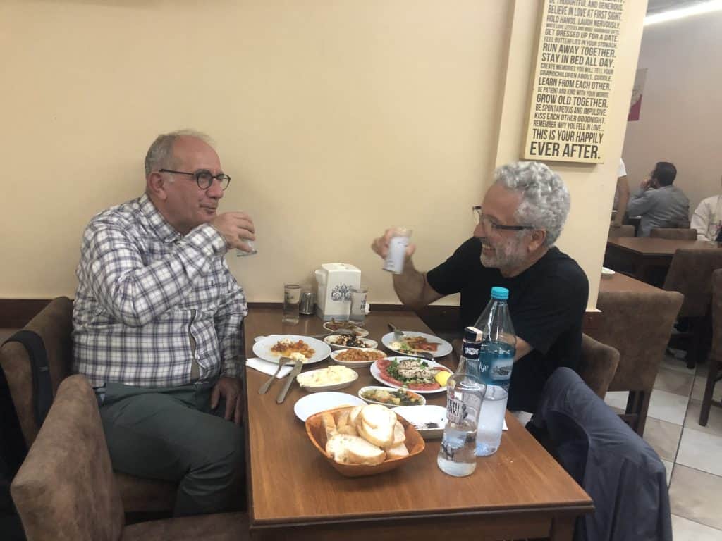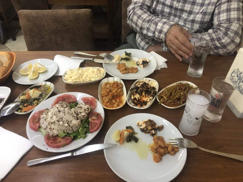 Meze seçimini bana bıraktı. Kereviz, barbunya pilaki, havuç tarator, acılı köpoğlu, taze fasulye, bir de beyin söğüş söyledim. Yücel hocanın beyinle arası olmasa da mezelerden pek memnunuz. Gayet lezzetli ve kıvamındalar. 1957’de kurulmuş burası, belli ki bir geleneği var. Öğreniriz birazdan.