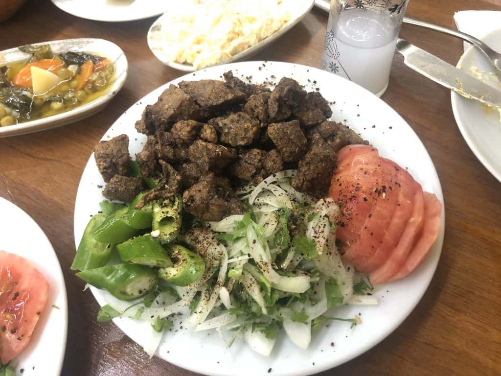 Ana yemek olarak tabelada balık yazmasına rağmen ciğer tava önerdi Sebahattin bey. Sakatat zaten yandaki Saray Ciğercisi’nden alınıyormuş. Günlük dememe gerek var mı?