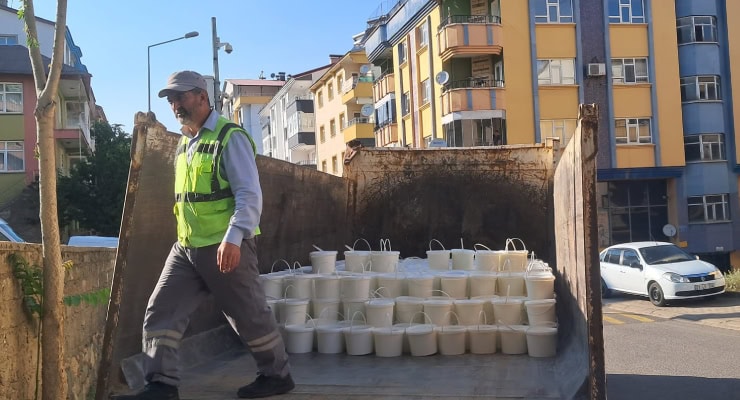 Polis eşliğinde yapılan kontrolde ‘köy yoğurdu’ olarak satılan 1 ton 700 kilogram etiketsiz yoğurdun merdiven altı üretim olduğu, 100 kilogram peynirinse son tüketim tarihinin geçtiği belirlendi.