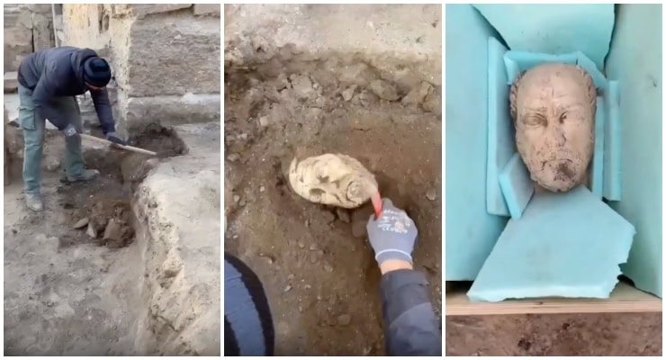 Kültür ve Turizm Bakanı Mehmet Nuri Ersoy X hesabından heykel başının ortaya çıkarılma görüntülerini yayınladı.