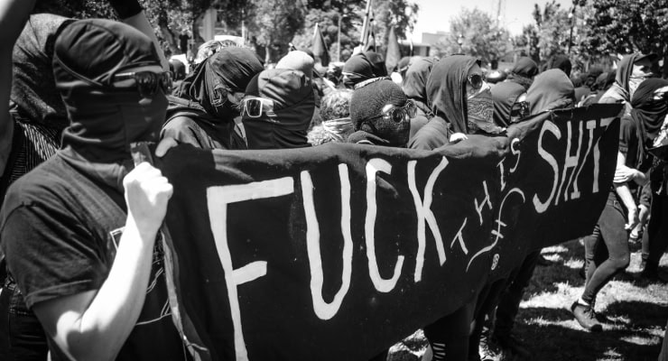 Antifa mala zarar verme ve bazen fiziksel şiddet olmak üzere militanca protestolara yönelebiliyor.