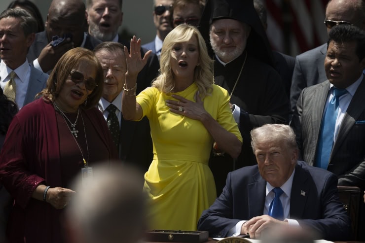 Politico‘nun haberine göre Trump, Beyaz Saray’ın bahçesindeki ‘Ulusal Dua Günü’ etkinliğinde Hristiyan, Yahudi ve Müslüman din adamlarının da katıldığı imza töreninde konuştu.