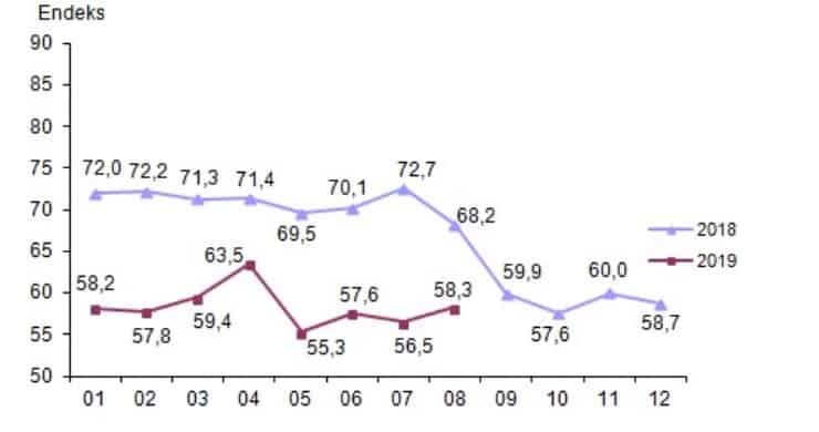Türkiye İstatistik Kurumu (TÜİK) ve Türkiye Cumhuriyet Merkez Bankası (TCMB) işbirliği ile yürütülen tüketici eğilim anketi sonuçlarından hesaplanan mevsim etkilerinden arındırılmış tüketici güven endeksi, ağustos ayında bir önceki aya göre yüzde 3.1 oranında arttı. Temmuz ayında 56.5 olan endeks, ağustos ayında 58.3 oldu.