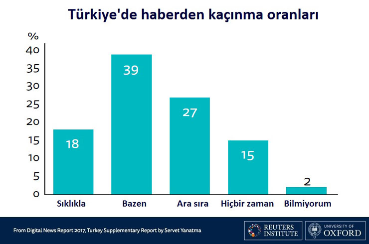 Oxford Üniversitesi’nin bu hafta yayınladığı ‘2017 Türkiye Dijital Haber Raporu’nda Türkiye’de ve dünyada haberden kaçınmanın nedenleri de ayrıntılı olarak yer alıyor.