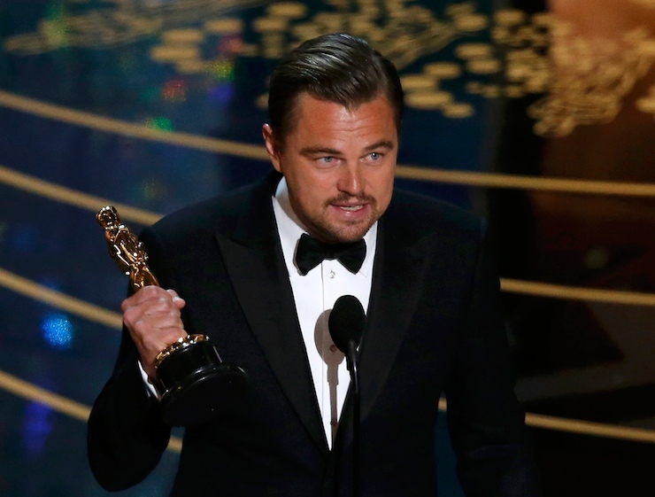 Leonardo DiCaprio holds the Oscar for Best Actor for the movie “The Revenant” at the 88th Academy Awards in Hollywood