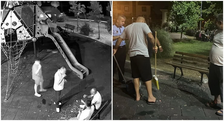 Yalova’da parkta yere çekirdek atan kişileri güvenlik kamerasından izleyen zabıta bu kişilere parkı temizletti.