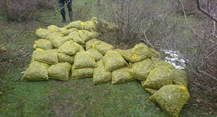 AA’nın haberine göre İlçe Emniyet Müdürlüğü ve jandarma ekiplerinin ortaklaşa çalışmaları neticesinde sahil kesimindeki ormanlık alanda çuvallar içinde 750 kilo kum midyesi bulundu.