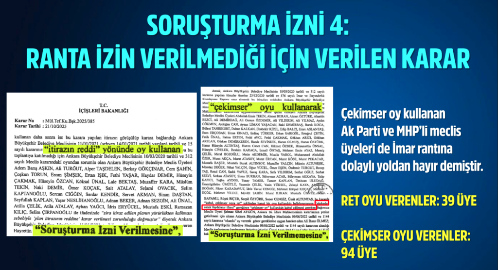 * Üçüncüsü konser iddiaları. Müfettiş geldi, inceledi. Raporunda Mansur Yavaş’la ilgili hiçbir şey yok. Tekrar savcılığın talebi üzerine bir daha geldi. “Başsavcılığının talebi üzerine yapılan ikinci denetimde denetim görevini ihmal ettiği gerekçesiyle soruşturma izni verilmiştir. Başkanlığı müfettişlerinin görevlendirildiği ve yapılan denetimler sonucunda herhangi bir usulsüzlük veya kamu zararı tespiti yapılmadığı anlaşılmakla birlikte; Ankara Büyükşehir Belediye Başkanı Mansur Yavaş hakkında soruşturma izni verilmesine…” deniliyor. Madem bir şey yok niye soruşturma izni veriyorsunuz? Dolayısıyla biz bu karara da itiraz ettik.
